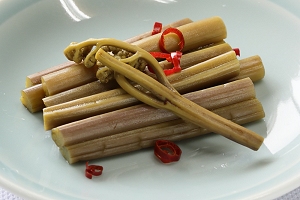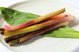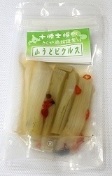 | ●山菜等加工品 士幌周辺で採れた天然物の山菜を使った加工品を販売しております(季節限定)。 また、士幌町内で収穫されたニンニクを使った加工品、当館の菜園で収穫した 大根を使った加工品も販売しております。